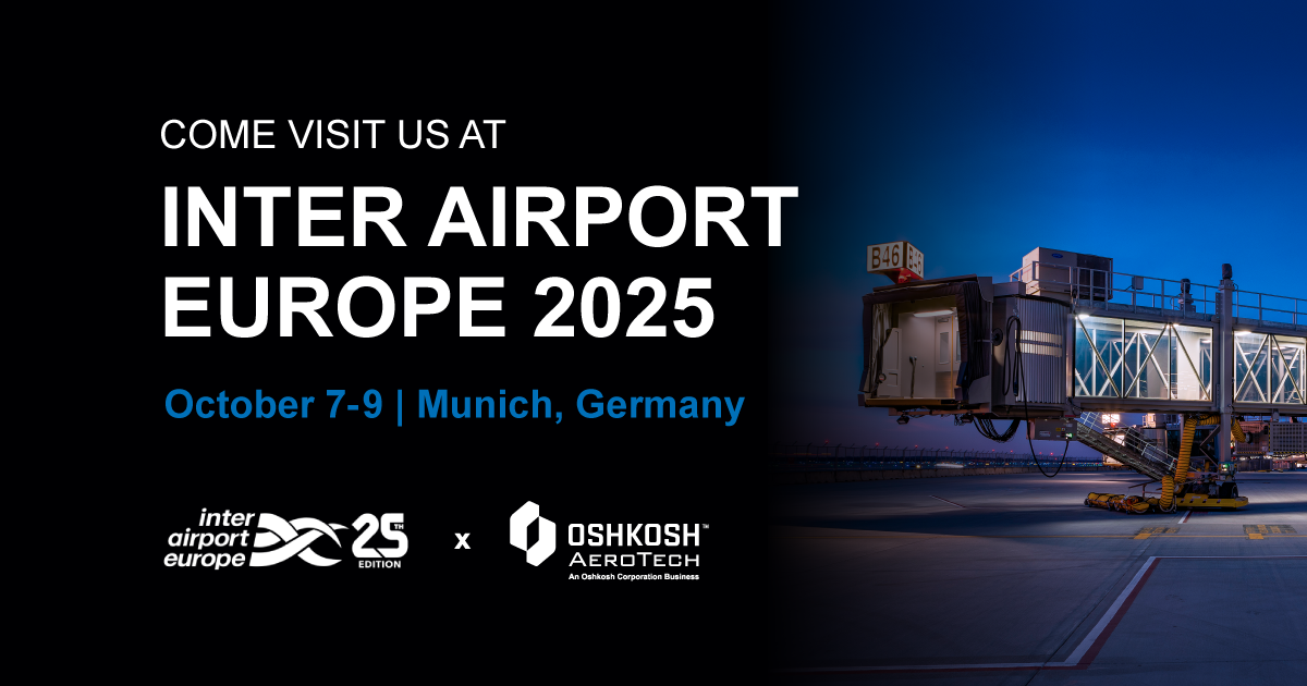 Ogden, Utah (October 2, 2025) – Oshkosh AeroTech, LLC, an Oshkosh Corporation (NYSE: OSK) business and a leading provider of aviation ground support products, gate equipment and airport services, will participate in the Inter Airport Europe 2025 event, held in Munich, Germany from October 7-9. During the event, Oshkosh AeroTech will highlight its broad portfolio of aviation solutions at stand B5-1450.